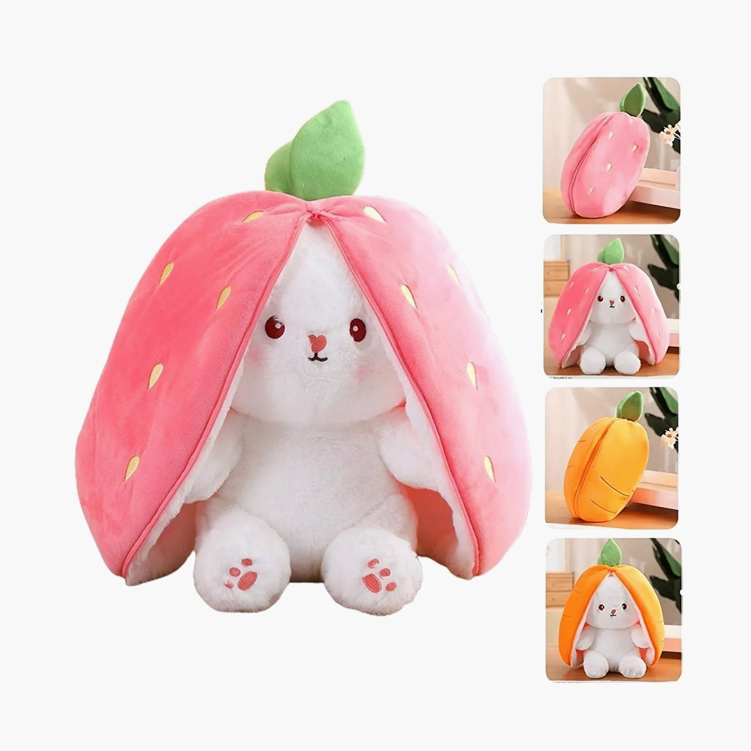Bunny Carrot Strawberry Pillow with Zipper.
